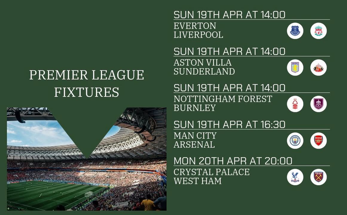 ⚽️Here are the Premier League Fixtures we are showing Today and Monday 13th April⚽️